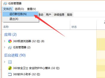 1. 首先第一步同样打开【任务管理器】窗口,根据下图箭头所指,依次点击【文件-运行新任务】选项。