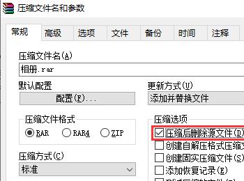3. 第三步根据下图所示,先勾选【压缩后删除源文件】,接着点击【设置密码】选项。