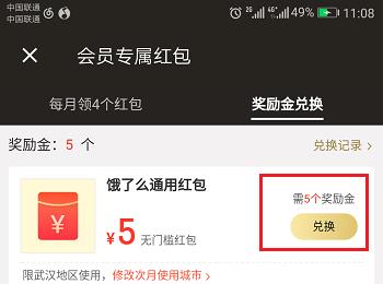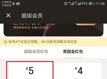 第二步进去超级会员奖励金红包界面之后,选择要兑换的红包,一般兑换通用红包,如下图所示: