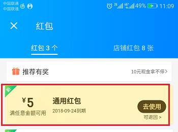 第五步在红包界面中,可以看到我们刚刚兑换的红包,如下图所示: