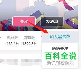 2. 第二步在弹出的菜单栏中,根据下图箭头所指,点击【加入黑名单】选项。
