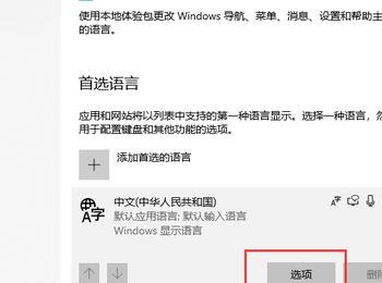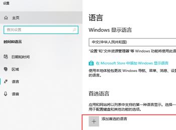 3. 如图,进入时间和语言的设置页面后,左侧默认显示的是【语言】设置页面。找到右侧的【添加首选的语言】选项下的语言。小编的是中文。点击