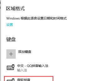 5. 如图,在打开的页面,【键盘】选项下,就可以看到【微软拼音】的选项了,点击。