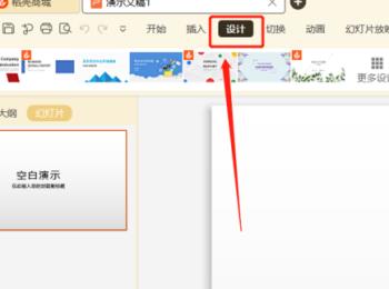 3. 第三步,创建的新的ppt文稿之后,点击上方菜单栏中的设计选项。