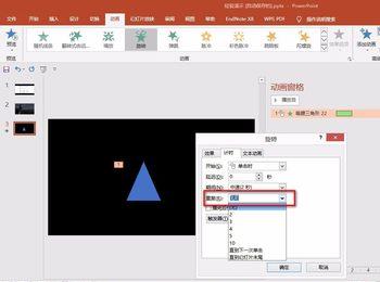 6. 最后根据下图箭头所指,动画窗格中显示的时长为无限,这样就会无限重复播放动画,直到结束幻灯片。