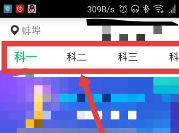 1. 第一步,打开手机中的驾校一点通软件,进入主页后在上方选择收藏题目的科目类别。