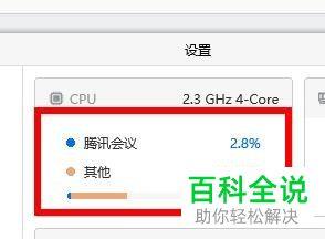 2.第二步,来到下图所示的CPU页面后,可以查询到腾讯会议所占用的CPU百分比。