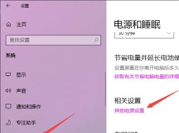 3. 第三步进入【系统】页面后,根据下图箭头所指,依次点击【电源和睡眠-其他电源设置】选项。
