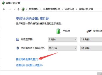 5. 第五步进入【编辑计划设置】页面后,根据下图箭头所指,点击【更改高级电源设置】选项。