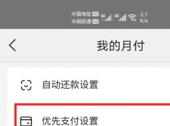 5. 第五步进入【我的月付】页面后,根据下图箭头所指,点击【优先支付设置】选项。