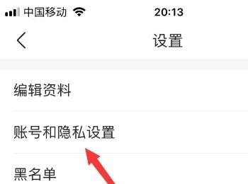 3. 第三步在【设置】页面中,根据下图箭头所指,点击【账号和隐私设置】选项。