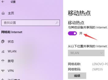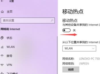 5. 在右侧打开的页面,将移动热点下方的开关打开;