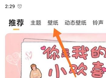1. 首先第一步打开手机中的【主题壁纸】App,根据下图箭头所指,点击顶部【壁纸】选项。