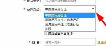 3. 然后选择证件类型,在打开的菜单中,选择【身份证】进行注册。