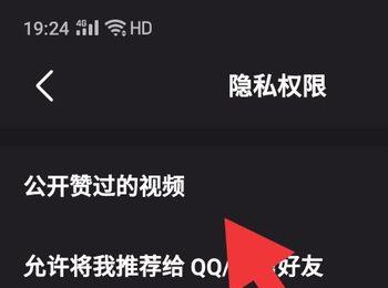 5. 进入“隐私权限”页面后,我们就可以看到“公开赞过的视频”的选项了,最后,将其右侧的开关打开即可显示。