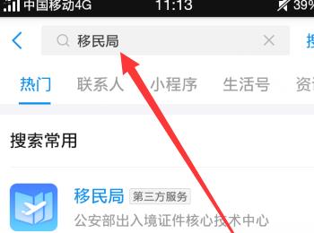 2.接着,我们在搜索框中输入“移民局”字样,点击搜索程序,再打开它。