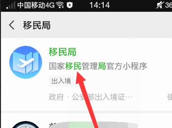 3.第三步,在搜索框内输入移民局并点击打开该小程序,随后使用微信登陆。
