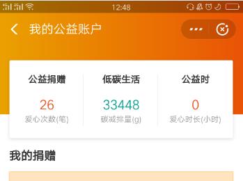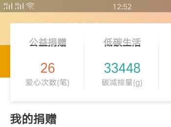 4.点击进入到如图所示的页面后,我们点击右上角的“我的公益账户”,接着我们便可以查看到我们所做的公益详情页面了。