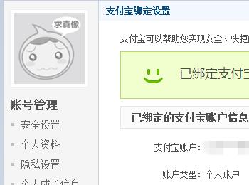 在左边界面的栏目中,找到支付宝绑定设置。点击进入。