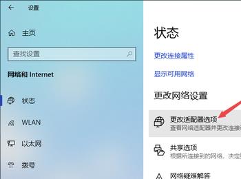4. 第四步进入【状态】页面后,根据下图箭头所指,点击【更改适配器选项】。