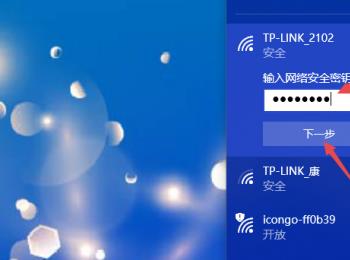 8. 第八步先在方框中输入网络安全密钥,接着根据下图箭头所指,点击【下一步】选项。