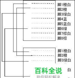 连接网卡和集线器 如果左手握住水晶头,将有弹片的一面朝下,带金属片的一面朝上,线头的插孔朝向右手一侧时,可以看到连接头中的8个引脚。为了叙述方便,我们对引脚进行编号,如图1所示。 双绞线连接网卡和集线器时,两端的RJ-45水晶头中线对的分布排列必须是完全一致的,称为”直通”的排列方式。如图2所示。 根据10Base-T和100Base-TX传输规范,双绞线的4对(8根)线中,1和2必须是一对,用于发送数据;3和6必须是一对,用于接收数据。其余的线在连接当中虽也被插入RJ-45水晶头,但实际上并没有使用。 举例来说:如果一端的水晶头1~8号引脚的颜色排列是:橙白、橙、绿白、蓝、蓝白、绿、棕白、棕,那么另一端的水晶头1~8号引脚的线对排列应该和它完全一样。不仅仅颜色排列一样,并且1和2必须是一对线;3和6也必须是一对线。 如果仅仅保证了可以连通,但1和2或3和6不是一对线,也是所谓的”直通”方式,制作起来简单省事,但是由于信号串扰,可能会使传输距离达不到100米,而且这种不规范的接线方式会给日后的维护带来极大的麻烦。笔者见过一份电脑报刊上有人提过这样的问题,说是请别人做的双绞线,短距离能连通,长距离却不能连通了。解答说是RJ-45水晶头内的线头没插到位。而我认为根据现象,很可能就是水晶头中线的分布问题。所以,为了保证良好的传输效果,在制作连接网卡和集线器的双绞线时,建议大家最好按照图2所示的顺序进行。