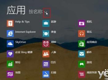Win8.1的开始屏幕有一个小小的改进——在左下角增加了一个小小的箭头按钮,这个按钮可以帮我们迅速带到Win8.1系统的应用列表中,在这里我们可以看到当前安装的所有应用。