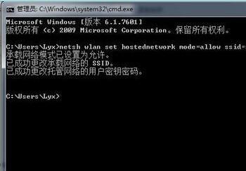 netsh wlan set hostednetwork mode=allow ssid=”xp510” key=xp510.com