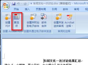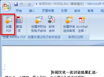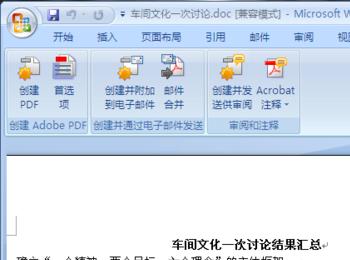 2、AdobeAcrobat9安装完成后,打开一个word文档。可以看到工具栏多出了一个Acrobat标签,打开后有几个按钮。