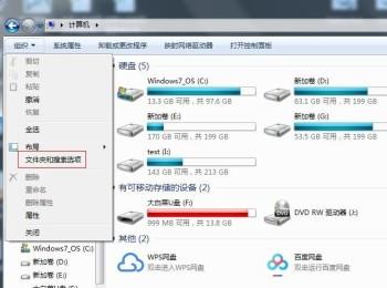 2. 第二步先点击【组织】选项,接着在弹出的菜单栏中,根据下图所示,点击【文件夹和搜索选项】。