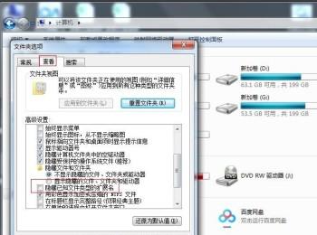5. 第五步再次打开【文件夹选项】窗口,根据下图所示,找到并勾选【显示隐藏的文件、文件夹和驱动器】,查看是否存在【autorun.inf】文件。如果找到文件,则表示U盘中没有病毒。