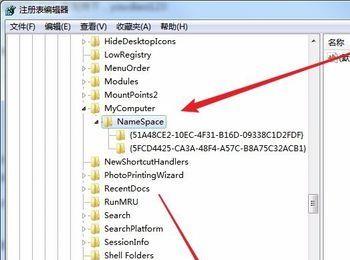 接着就会打开Windows7系统的注册表编辑器窗口,在窗口中我们定位到HKEY_CURRENT_USER\Software\Microsoft\Windows\CurrentVersion\Explorer\MyComputer\NameSpace注册表项。