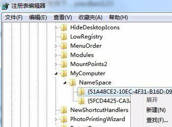 展开该NameSpace注册表项后,右键点击其下的注册表子项,在弹出菜单中选择“删除”菜单项。