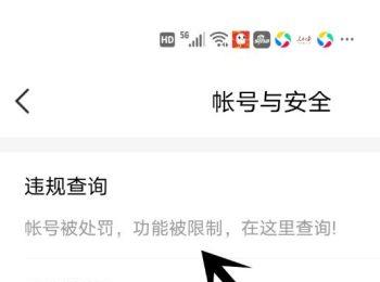 4. 在打开的账号与安全页面,选择【违规查询】选项,点击。