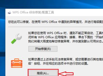 3. 第三步,在下图所示的配置工具窗口中,点击箭头所指的高级选项。
