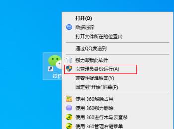 1. 如图,打开电脑,我们以微信程序为例,如果仅需要使用一次管理员权限,则在图标上右键,在打开的菜单中,选择以管理员身份运行即可。