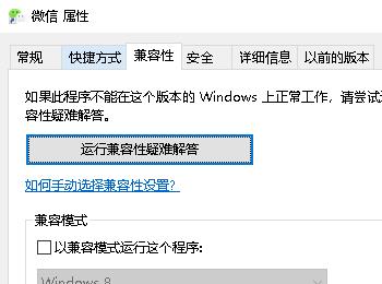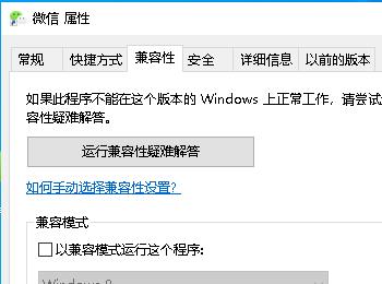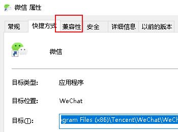 3. 在打开的微信属性窗口中,上方切换到兼容性选项下。