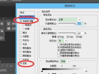 5. 在弹出的窗口中,左侧勾选上“斜面与浮雕”与“投影”选项,最后点击右上方的确定按钮即可设置完成。