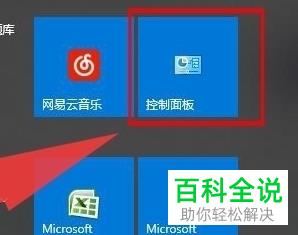 3.来到下图所示的开始菜单后,点击箭头所指的控制面板选项。