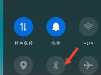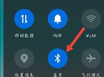 2.第二步,来到下图所示的通知栏页面后,点击箭头所指的蓝牙图标,使其变成蓝色。