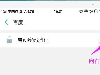 5. 如图,在打开的页面,将启动密码验证右侧的开关打开即可,这时,我们再次打开该应用的时候,就需要输入密码才能进入了。