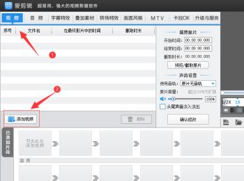 1. 首先打开电脑上的爱剪辑软件,进入主页面后,点击左上角的视频选项,然后点击左侧的添加视频按钮,将视频添加到软件中