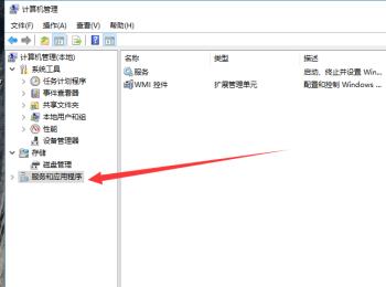 2. 在打开的计算机管理页面,点击左侧的服务和应用程序选项。
