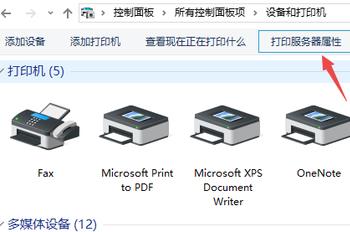 9. 接下来,将任意打印机选中,点击上方的【打印服务器属性】选项