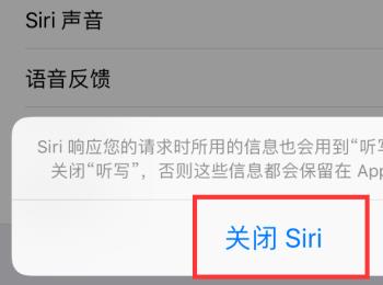 6. 第六步在弹出的菜单栏中,根据下图所示,点击【关闭Siri】选项。