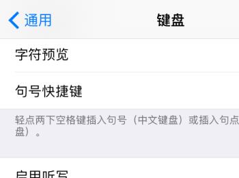 10. 第十步进入【键盘】页面后,根据下图所示,将【启用听写】选项后的圆圈向左滑动,关闭该功能。