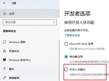 3. 在打开的更新和安全设置页面,点击左侧下方的开发者选项。