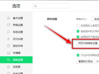 3. 在右侧打开的页面,找到“网页内容高级设置”的按钮,点击。