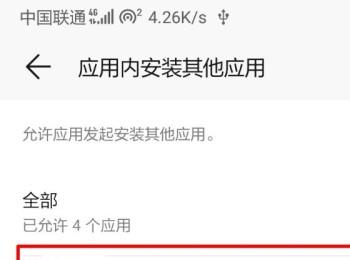 4. 进入权限管理页面后,向下滑动,找到“应用内安装其它应用”的选项,点击。