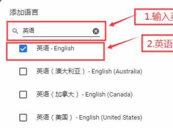6. 在弹出的“添加语言”窗口中,在上方的搜索框中,输入“英语”,然后在搜索到的英语前面的方框中,“打√”,点击右下角的“添加”按钮。
